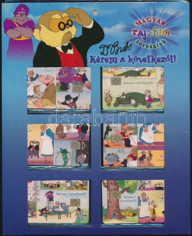 Leírás: Dr. Bubó "Kérem a következőt!" telefonkártya sor, 6 db, eredeti csomagolásában