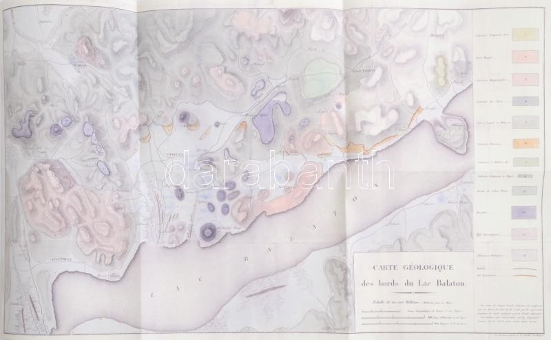 Leírás: Carte Géologique des bords du Lac Balaton. Reprint térkép, 64x39 cm