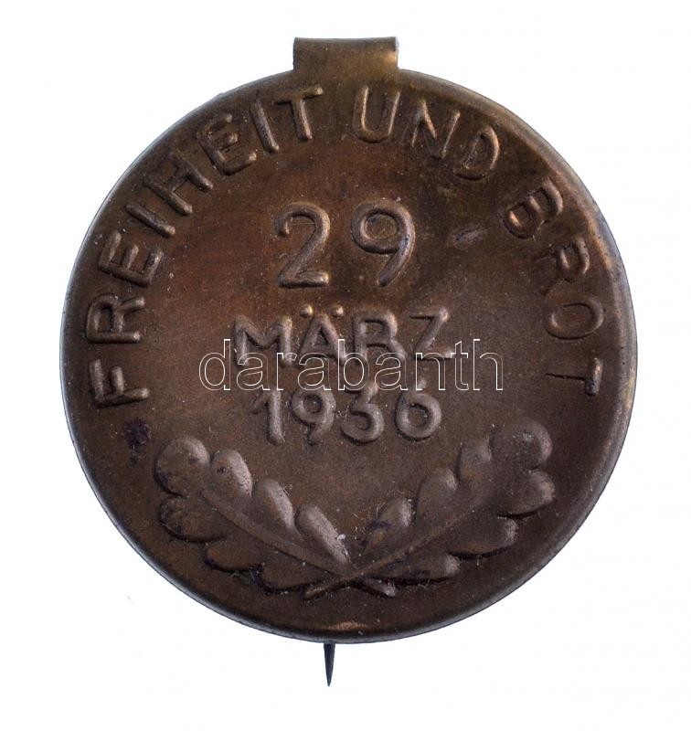 Német Harmadik Birodalom 1936. "Freiheit und Brot 29. März 1936" Br propaganda jelvény (27mm) T:1-