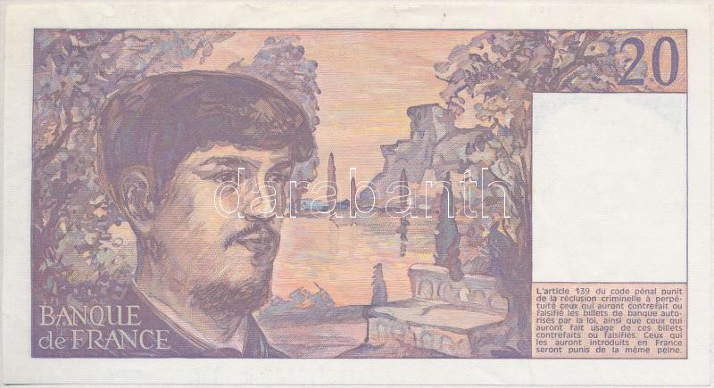 France 1985. 20 Francs C:F ... https://www.darabanth.com/hu/390-Gyorsarveres/390.0/Numizmatika/Kulfoldi-bankjegyek~2000013/Franciaorszag-1985-20Fr-TIII-szep-papir-France-1985-20-Francs-CF-fine-paper~II2352707