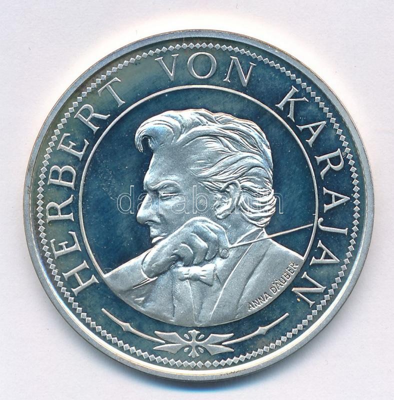 Ausztria DN "Herbert von Karajan" jelzett Ag emlékérem. Szign.: Anna Däuber (20g/0.925/40mm) T:PP