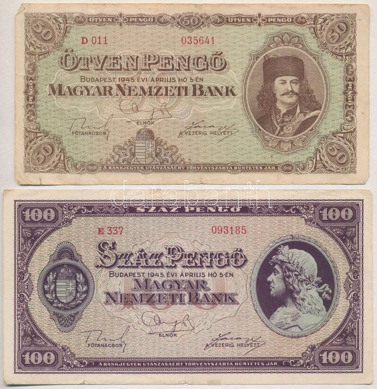 Leírás: 1945. 50P + 1945. 100P T:III kis szakadások Adamo P15, P18