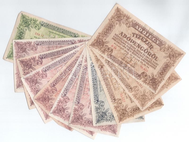 Leírás: 1946. 10.000AP (3x) + 50.000AP + 100.000AP (6x) + 500.000AP, közte sorszámos és sorszám nélküliek is T:III közte szép papír