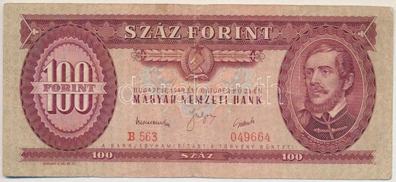 Leírás: 1949. 100Ft "B 563 049664" T:III ragasztónyom Adamo F29