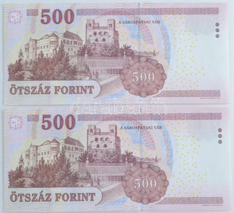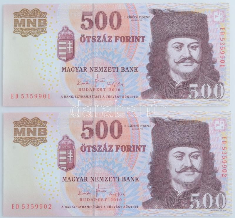 2010. 500Ft "ED" (2x) sorszámkövető T:I,I- https://www.darabanth.com/hu/390-Gyorsarveres/390.0/Numizmatika/Magyar-bankjegyek~2000007/2010-500Ft-ED-2x-sorszamkoveto-TI-I-~II2347768
