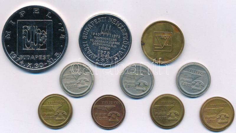 10db-os vegyes telefonérme, emlékérem, zseton tétel, közte 1974. "HUNGEXPO - Nemzetközi Ipari és Elektronika Kiállítás-Budapest" fém emlékérem (40mm) T:2,2-