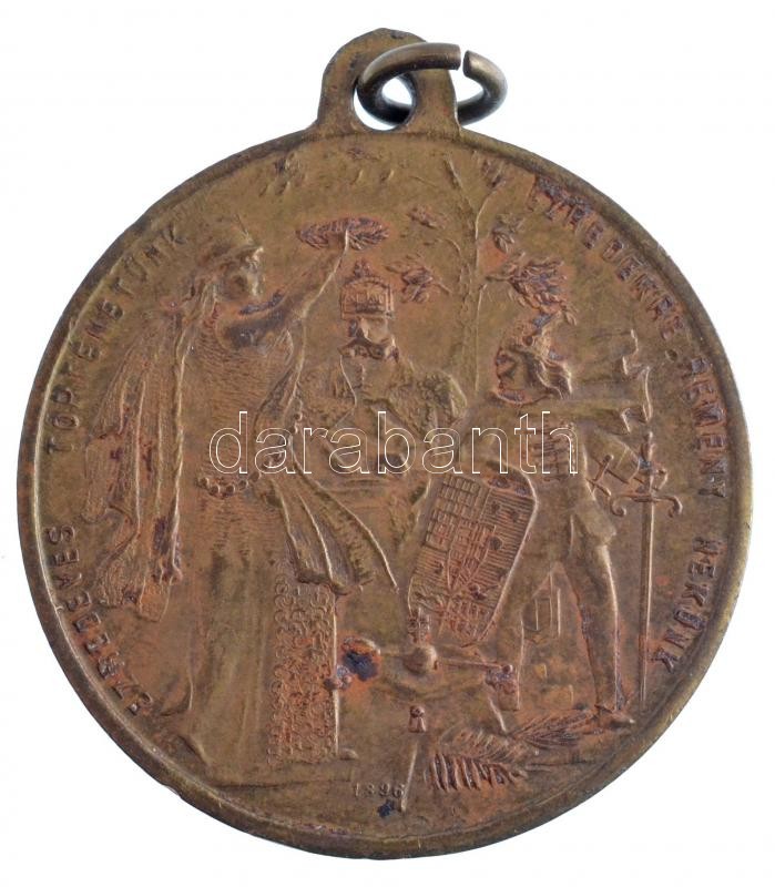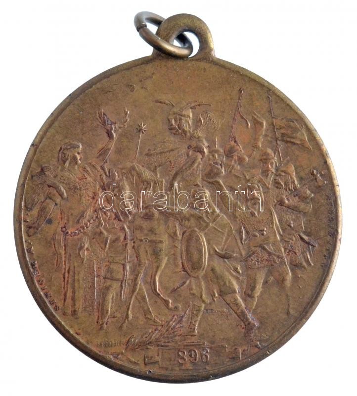 Leírás: 1896. "Ezredéves Történetünk Ezredekre Remény Nekünk - Honfoglalás" millenniumi Br emlékérem füllel (32,5mm) T:2 ph.
