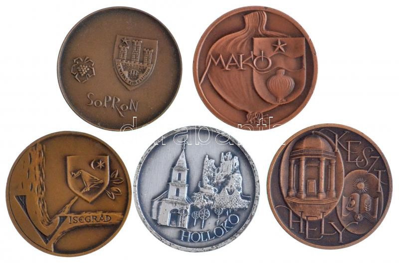Leírás: 5xklf magyar városi Br emlékérem (közte 1db ezüstpatinázott Br) (32mm) Sopron, Keszthely, Hollókő, Visegrád, Makó T:2