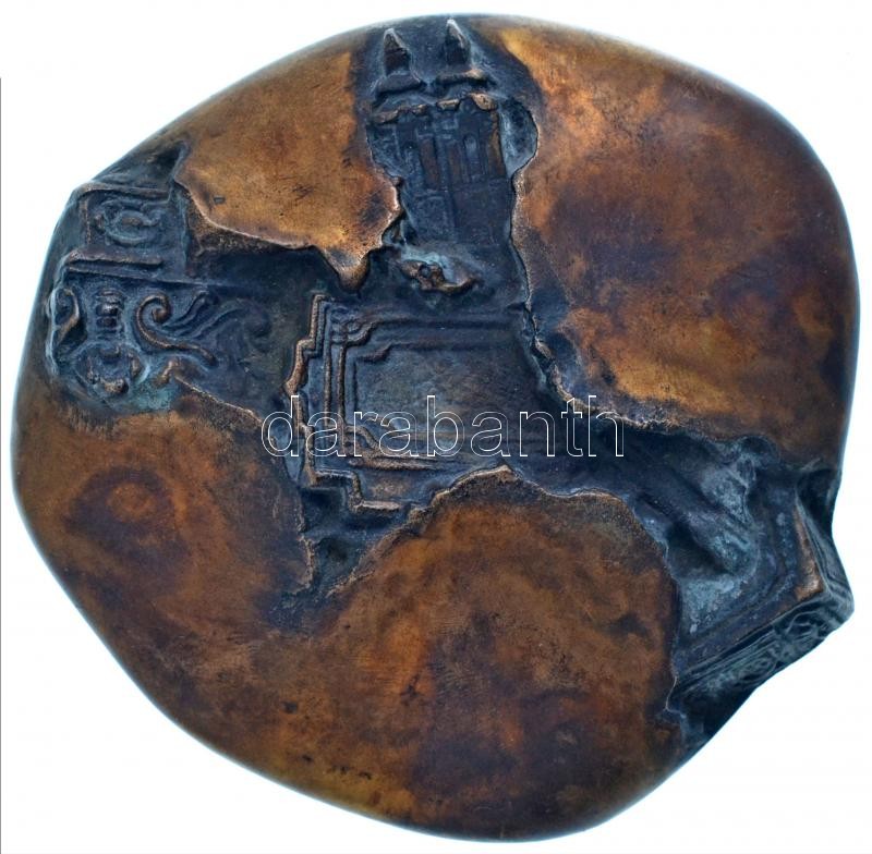 Csíkszentmihályi Róbert (1940-) 1972. "Székesfehérvár ezer éves 1972" kétoldalas Br plakett, eredeti hozzátartozó, dombornyomott bőrszütyővel (~95-102,5mm) T:1- patina