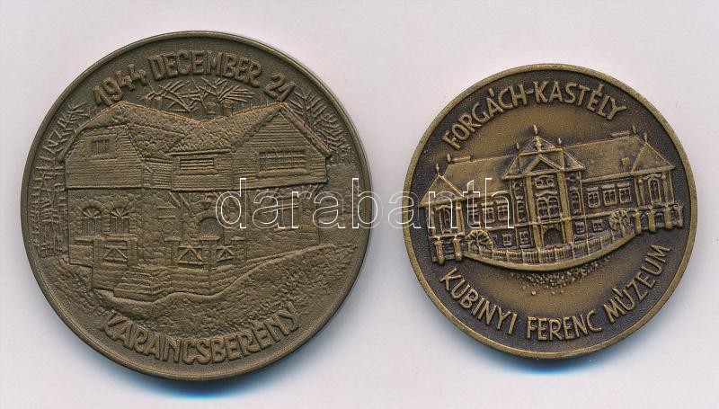 Leírás: Garamkeszi János (1936-2014) 1971. "Hazánk felszabadulásának 35. évfordulójára MÉE Salgótarjáni csoport - Nógrádi Sándor / Karancsberény" Br emlékérem (38mm) + 1980. "Az 1705-ös szécsényi országgyűlés emlékére 1980 - II. Rákóczi Ferenc / Forgách-kastély - Kibinyi Ferenc Múzeum" Br emlékérem (32mm) T:1-