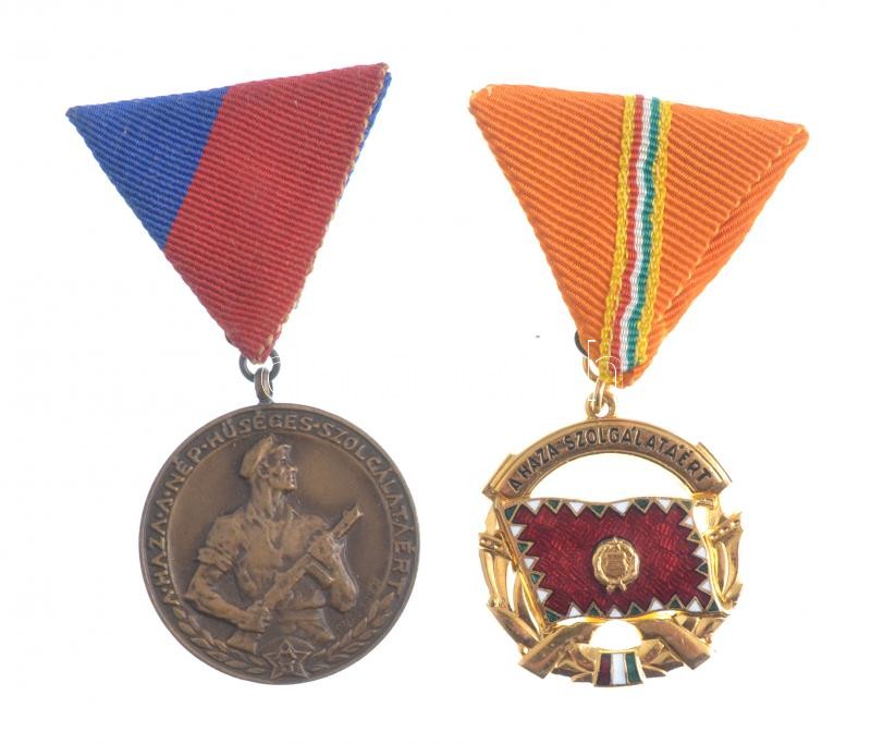 Leírás: 1964. "A Haza Szolgálatáért Érdemérem arany fokozat" zománcozott aranyozott Br kitüntetés + ~1960-1970. "Munkásőr" Br kitüntetés, szalagon, miniatűrrel szalagsávon, eredeti tokban T:1-