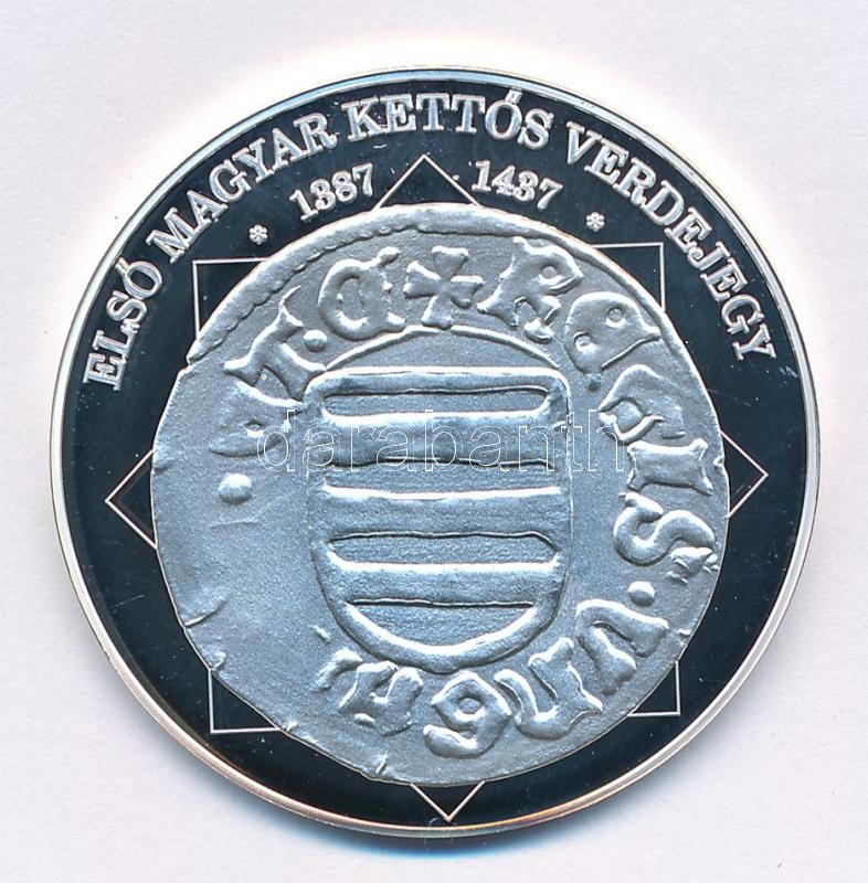 Leírás: DN "A magyar nemzet pénzérméi - Első magyar kettős verdejegy 1387-1437" Ag emlékérem tanúsítvánnyal (10,37g/0.999/35mm) T:PP