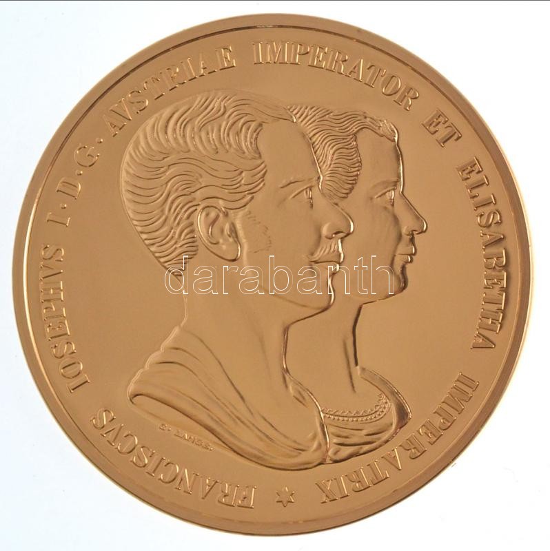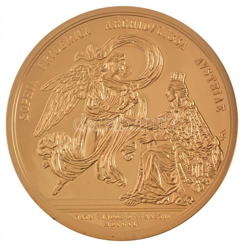 Leírás: DN "Érem az első gyermek Zsófia Friderika születése alkalmából 1857" aranyozott Cu utánveret, jelzett, tanúsítvánnyal (46mm) T:PP