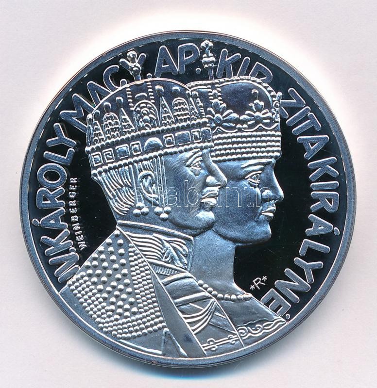 Leírás: DN "IV. Károly koronázási emlékérme 1916" ezüstözött Cu utánveret, jelzett, tanúsítvánnyal (46mm) T:PP
