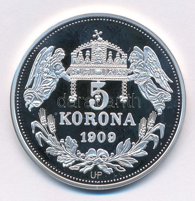 Leírás: DN "Királyi koronák - I. Mátyás / 5 korona 1909" Ag emlékérem tanúsítvánnyal (20g/0.999/38,61mm) T:PP patina