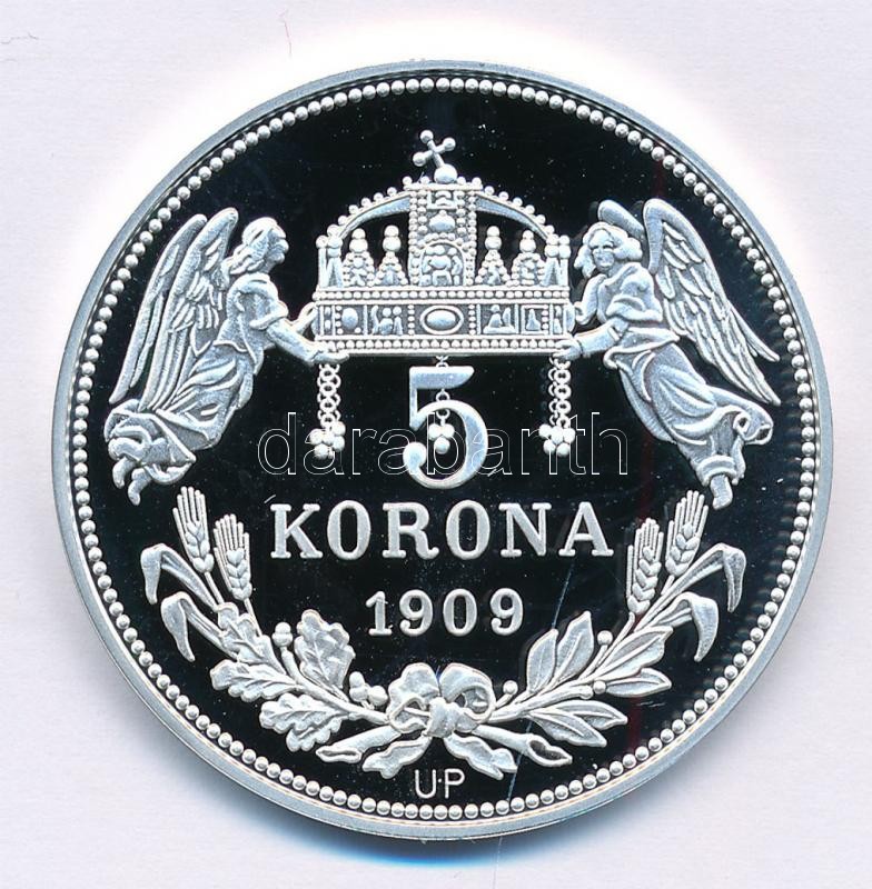 Leírás: DN "Királyi koronák - III. Károly / 5 korona 1909" Ag emlékérem tanúsítvánnyal (20g/0.999/38,61mm) T:PP