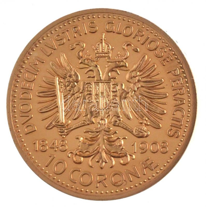 Leírás: DN "Osztrák-Magyar Monarchia pénzei utánveretben - 1908 10K" aranyozott Cu-Ni emlékérem "COPY" beütéssel, tanúsítvánnyal T:PP