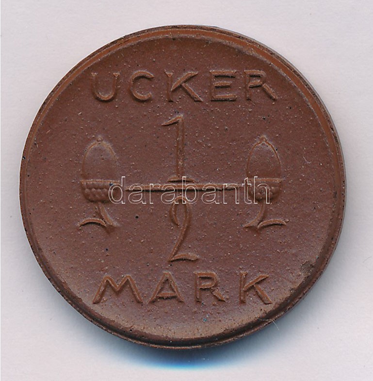 Német Birodalom / Prenzlau 1921. 1/2M "UCKER MARK / PRENZLAU 1921" jelzett meisseni barna porcelán szükségpénz T:1-