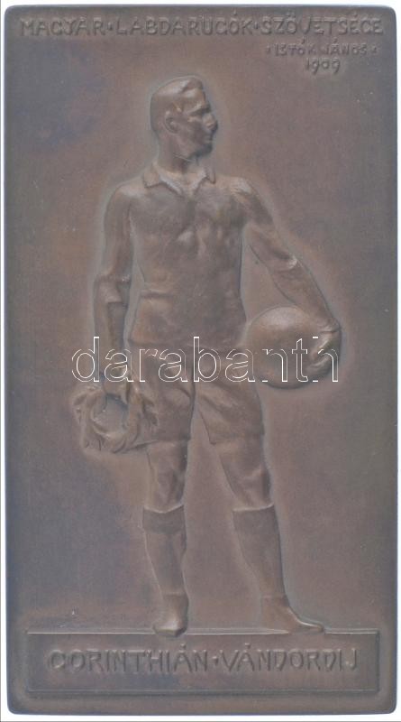 Istók János (1873-1972) 1909. "Magyar Labdarúgók Szövetsége - Corinthián Vándordíj" egyoldalas Br plakett, hátoldalán gravírozva "NAGY LÁSZLÓ A MUNKA JUTALMÁUL 1938" eredeti dísztokban (91x50,5mm) T:1-