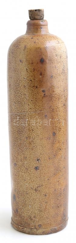 Leírás: Festett, mázas kerámia pálinkás kiöntő, ~ 1l-es, kopásokkal, m: 31 cm