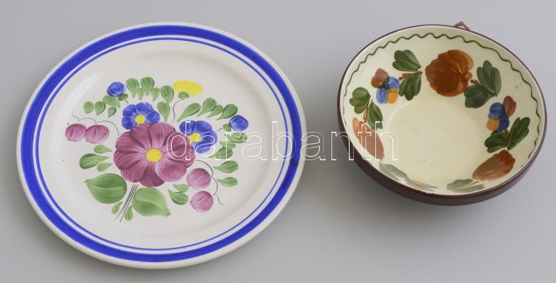 Leírás: Gránit kerámia fali dísz tányér + tálka (hajszálrepedéssel) Kézzel festettek, jelzettek d: 14 cm, 21 cm