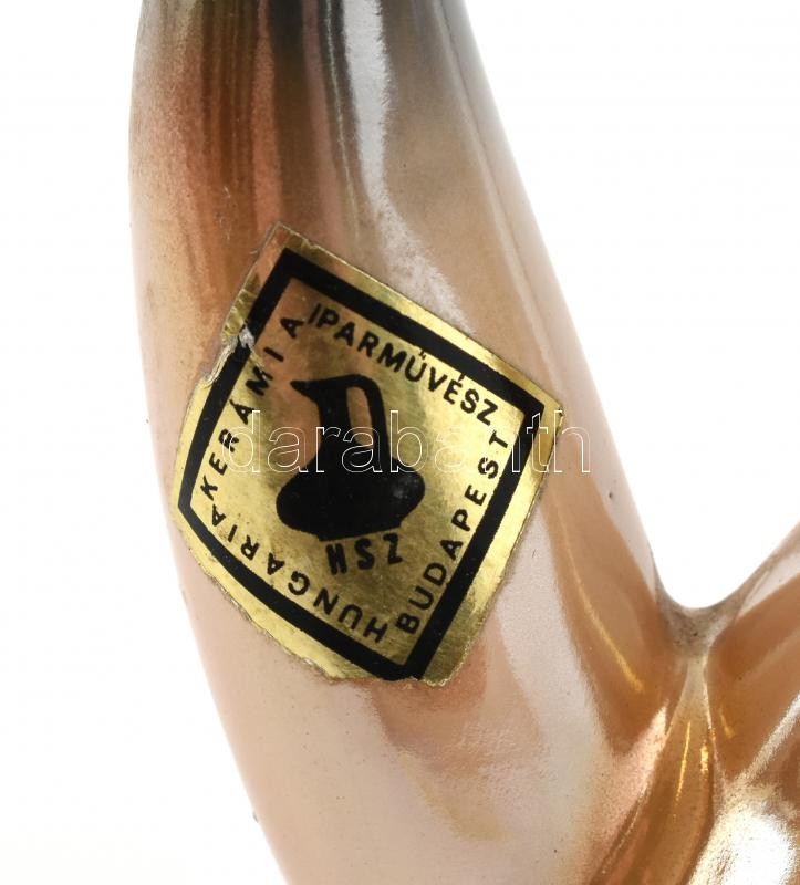 Leírás: Iparművész kerámia róka, matricával jelzett, kis kopásnyomokkal, m: 10,5 cm