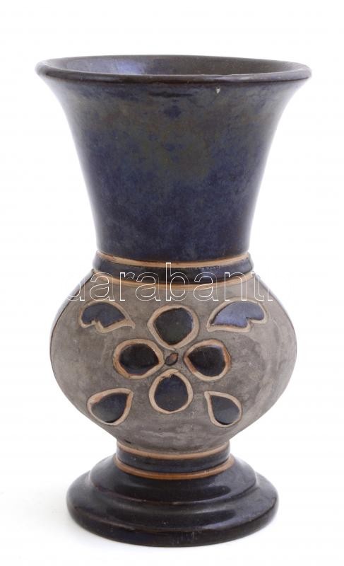 Leírás: Kis kerámia váza, mázas, jelzett, m: 13 cm