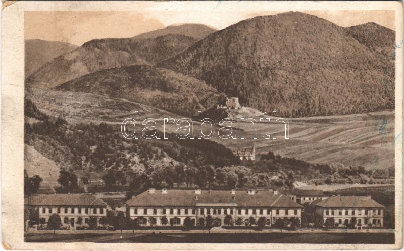 Leírás: 1918 Rózsahegy, Ruzomberok; Laktanya, Chocshegy Likavai várral / Kasáren, Vrch Choc s Likavskym zámkom / K.u.K. military barracks, mountain, castle ruins (EB)