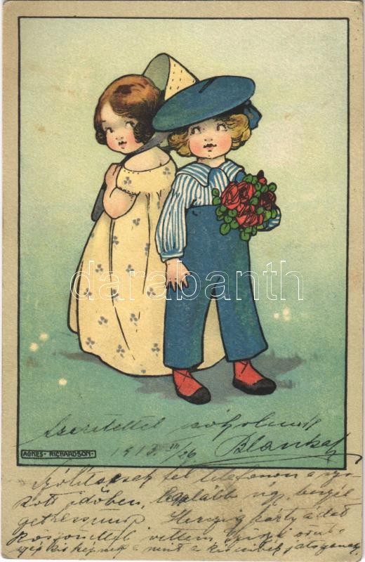 1913 Children art postcard, romantic couple s: Agnes Richardson (EK) https://www.darabanth.com/hu/391-Gyorsarveres/391.0/Kepeslapok/Gyerek~1000064/1913-Children-art-postcard-romantic-couple-s-Agnes-Richardson-EK~II2362919