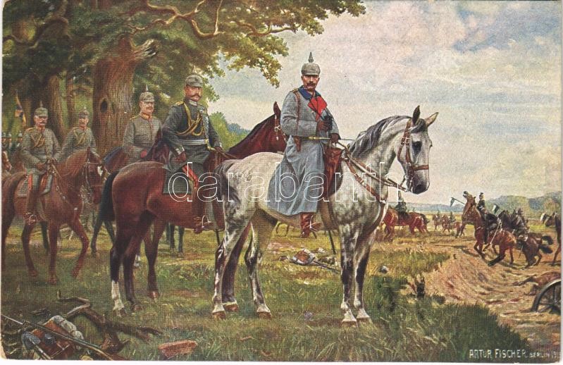 Aus großer Zeit / WWI German military art postcard, Wilhelm II, Hinden... https://www.darabanth.com/hu/391-Gyorsarveres/391.0/Kepeslapok/Katonai~1000073/Aus-groC39Fer-Zeit-WWI-German-military-art-postcard-Wilhelm-II-Hindenburg-s-Artur-Fischer~II2357343