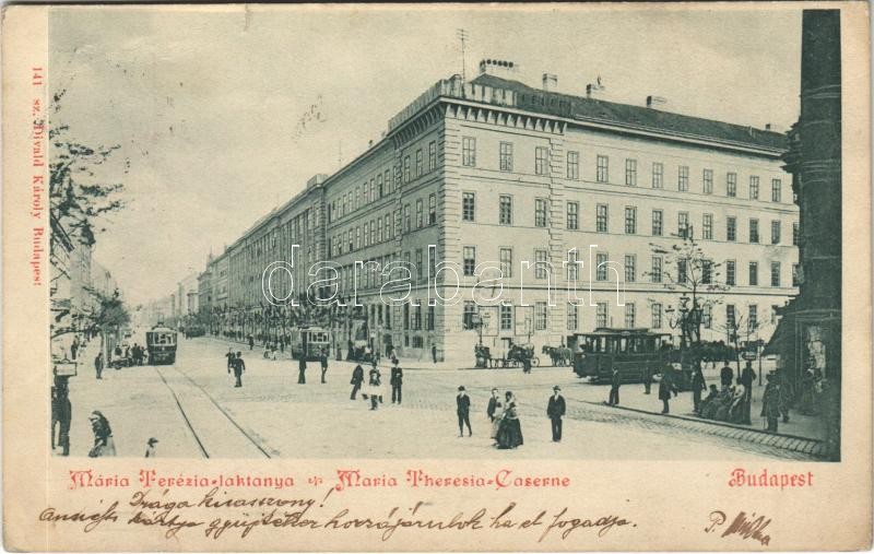 Leírás: 1900 Budapest VIII. Mária Terézia laktanya, villamos a körúton és az Üllői úton is. Divald Károly 141. sz. (r)