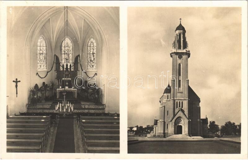 Leírás: 1938 Budapest XX. Pestszenterzsébet, Pesterzsébet, Erzsébetfalva; Magyarok Nagyasszonya plébániatemplom, belső. Börzsönyi János fényképész kiadása
