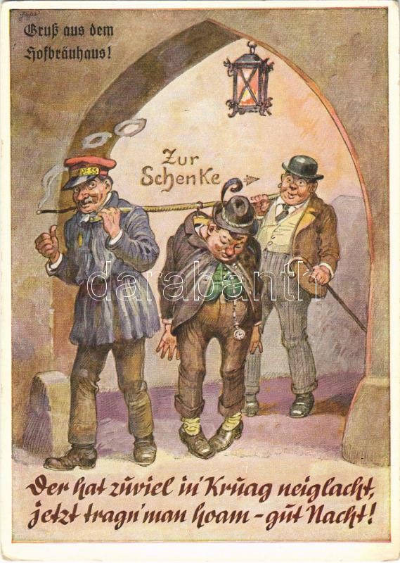Leírás: "Gruß aus dem Hofbräuhaus!" Münchener Bildkunstverlag August Lengauer Nr. 2101. / German drunk humour art postcard (Rb)