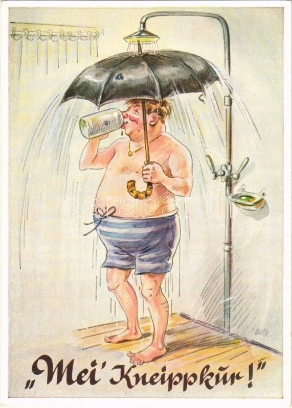 Leírás: "Mei' Kneippkur!" Münchener Bildkunstverlag August Lengauer Nr. 3112. / German drunk humour art postcard