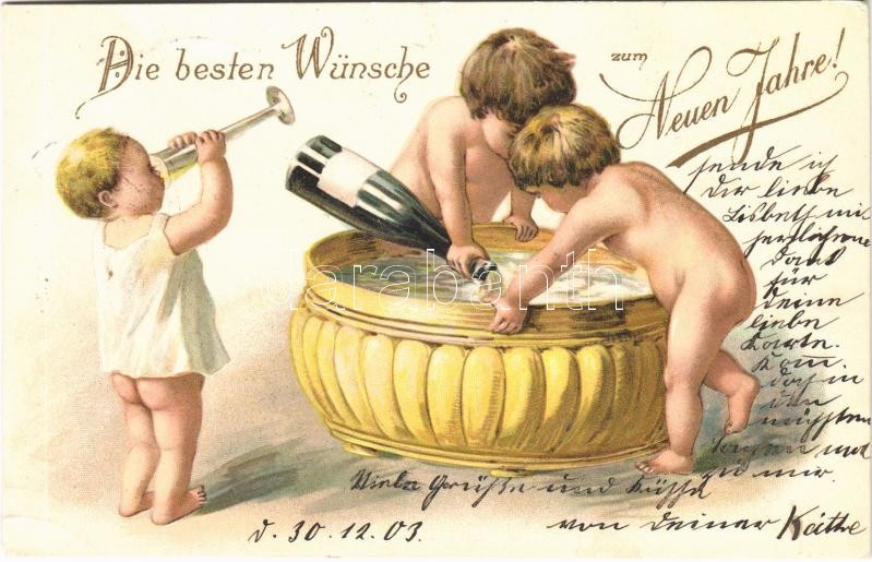1903 Die besten Wünsche zum Neuen Jahre! / New Year greeting art postc... https://www.darabanth.com/hu/391-Gyorsarveres/391.0/Kepeslapok/Udvozlolapok-Unnepek~1000089/1903-Die-besten-Wunsche-zum-Neuen-Jahre-New-Year-greeting-art-postcard-children-bathing-in-cham~II2362941