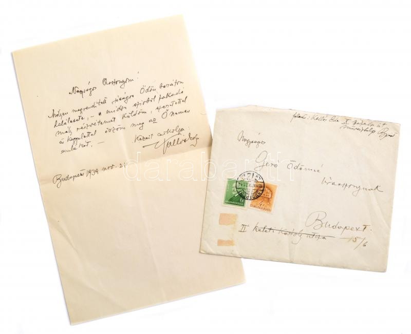 1939. nov. 21 Kallós Ede (1866-1950) szobrászművész autográf, kondoleá... https://www.darabanth.com/hu/391-Gyorsarveres/391.0/Mutargy-papirregiseg-egyeb/Tortenelmi-dokumentumok-keziratok-erdekessegek~500019/1939-nov-21-Kallos-Ede-1866-1950-szobraszmuvesz-autograf-kondolealo-levele-Gero-Odonn~II2315009