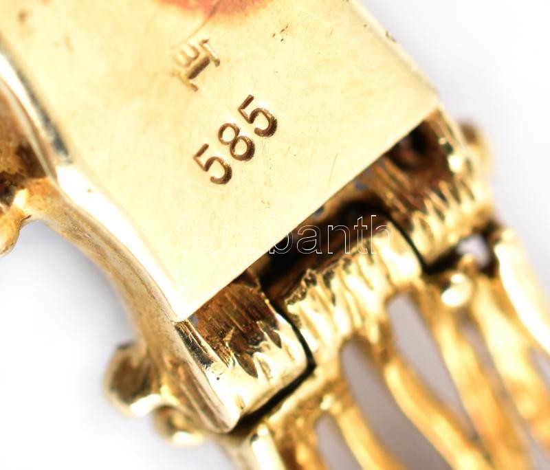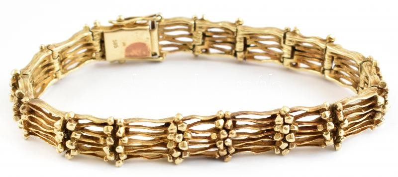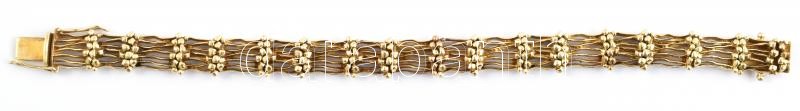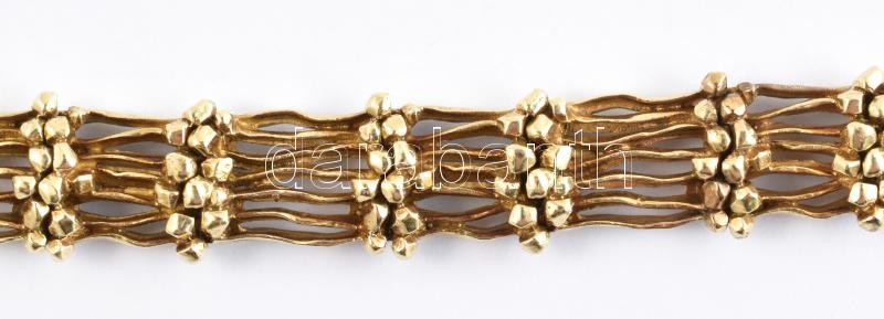 Leírás: 14K arany (Au) karkötő fonott díszítéssel. Jelzett, 30,5 g, 18,5 cm