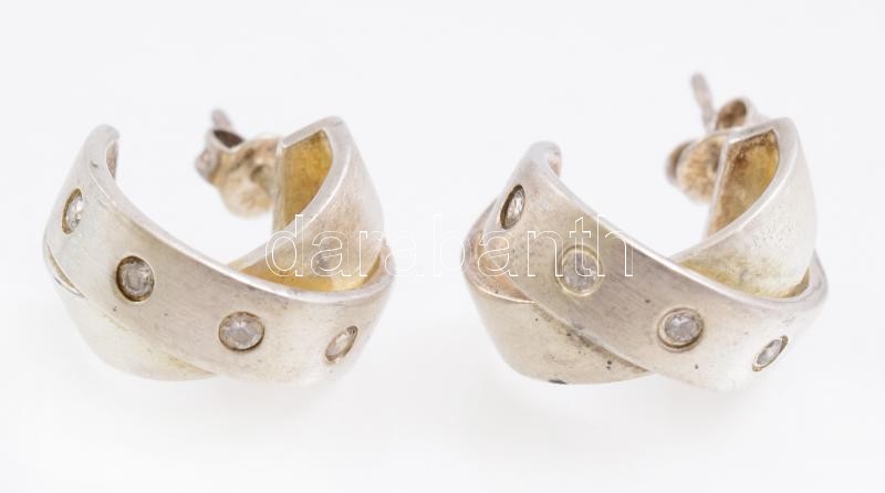 Leírás: Ezüst(Ag) fülbevalópár, apró kövekkel, Pierre Cardin jelzéssel, bruttó: 10,42 g
