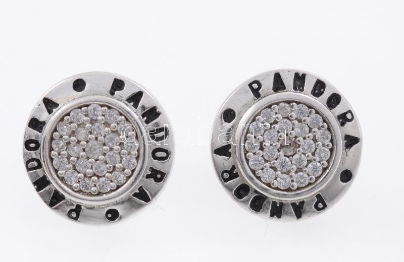 Leírás: Ezüst(Ag) kerek fülbevalópár, apró kövekkel, Pandora jelzéssel, d: 1,1 cm, bruttó: 2,61 g