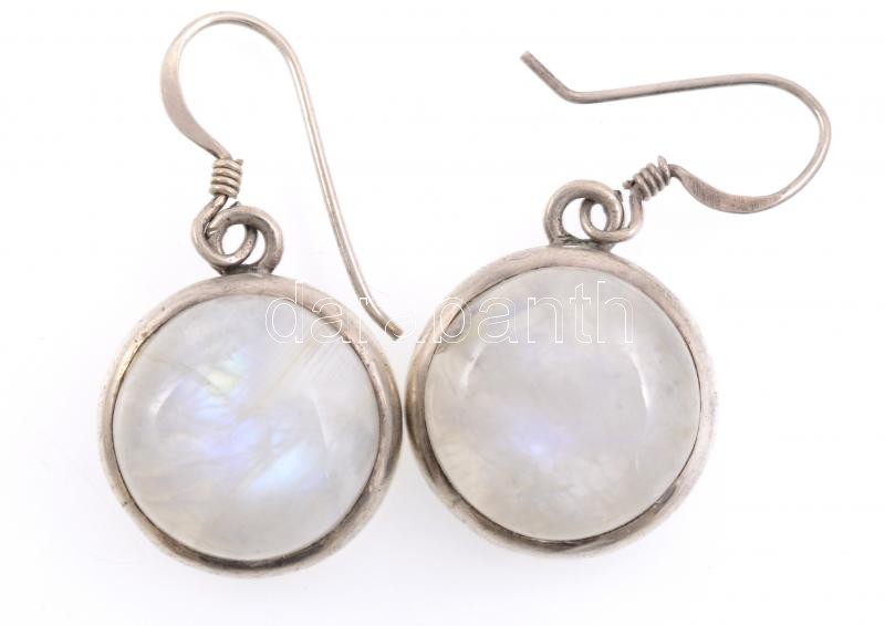 Leírás: Ezüst(Ag) kerek fülbevalópár, holdkővel, jelzett, d: 1,5 cm, bruttó: 10 g