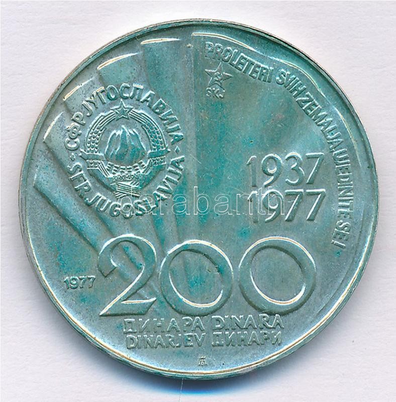 Yug... https://www.darabanth.com/hu/391-Gyorsarveres/391.0/Numizmatika/Kulfoldi-fem-es-ezustpenzek~2000014/Jugoszlavia-1977-200D-Ag-Tito-85-szuletesnapja-T1-2-patina--Yugoslavia-1977-200-Dinara-Ag~II2354394