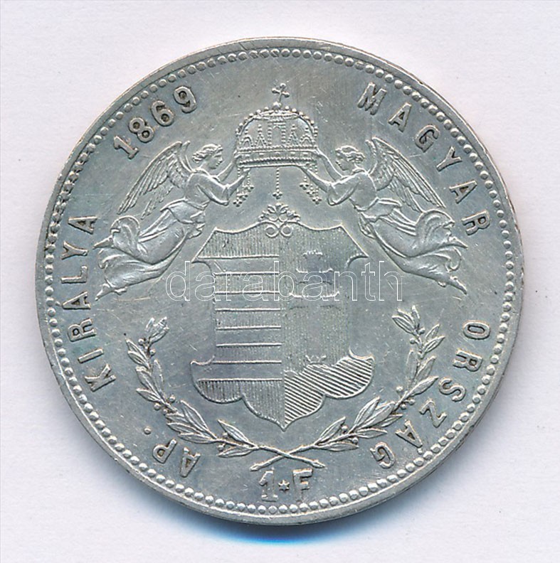 1869KB 1Ft Ag "Ferenc József / Angyalos címer" Körmöcbánya T:1- kis ph., kis patina