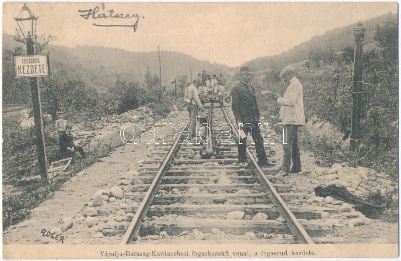 Váralja-Hátszeg-Karánsebes fogaskerekű vonal, a fogasrúd kezdete. Adle... https://www.darabanth.com/hu/392-Gyorsarveres/392.0/Kepeslapok/Erdely~1500006/Varalja-Hatszeg-Karansebes-fogaskereku-vonal-a-fogasrud-kezdete-Adler-fenyirda-Szaszvaros-~II1573228