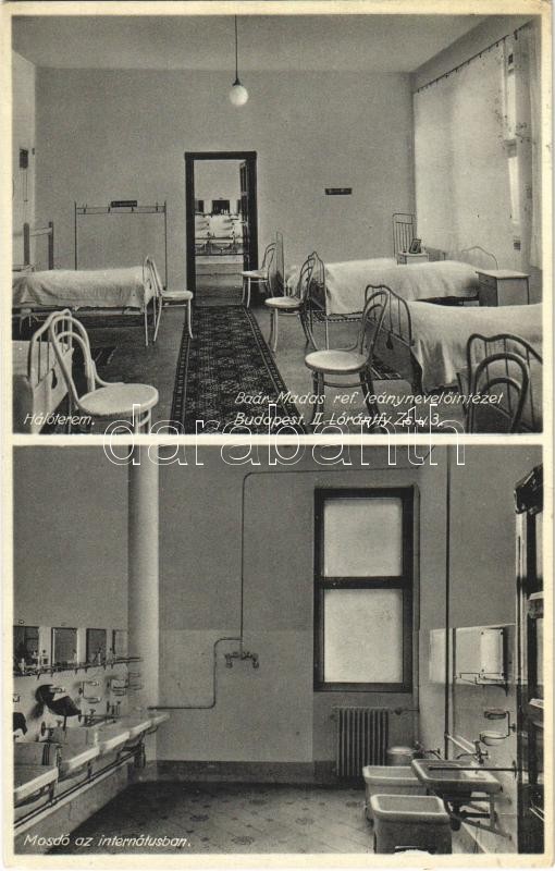 1940 Budapest II. Baár-Madas református leány nevelőintézet, hálóterem... https://www.darabanth.com/hu/392-Gyorsarveres/392.0/Kepeslapok/Magyarorszag~1500005/1940-Budapest-II-Baar-Madas-reformatus-leany-nevelointezet-haloterem-belso-mosdo-az-int~II2374561