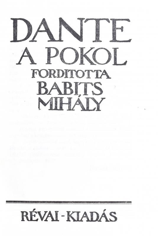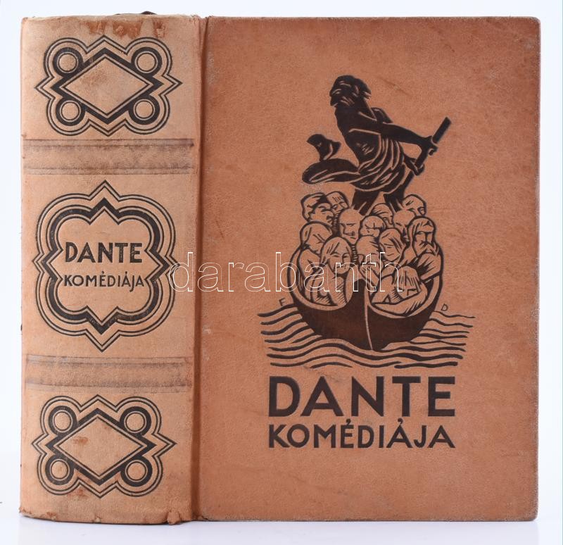 Dante Komédiája I-III. köt. (Egyben; I. A Pokol. II. Purgatórium. III. A Paradicsom.) Fordította: Babits Mihály. Bp.,(1912), Révai, 304+296+314 p. Kiadói festett, préselt, illusztrált egészbőr kötésben, kopott borítóval és gerinccel.