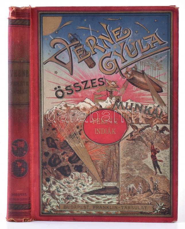 Leírás: Verne Gyula: Fekete Indiák. Ford.: Varga Ottó. Bp.,1901, Franklin. Egészoldalas illusztrációkkal. Kiadói aranyozott félvászon-kötés, kopott, foltos borítóval, kissé sérült gerinccel, laza kötéssel.