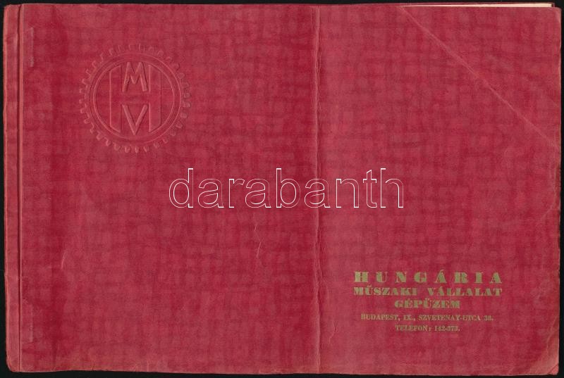 cca 1930-1940 Bp IX., Hungária Műszaki Vállalat Gépüzem tájékoztató pr... https://www.darabanth.com/hu/392-Gyorsarveres/392.0/Mutargy-papirregiseg-egyeb/Nyomtatvanyok~500032/cca-1930-1940-Bp-IX-Hungaria-Muszaki-Vallalat-Gepuzem-tajekoztato-prospektus-hajtott-18p~II2374583
