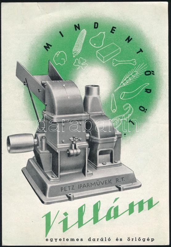 cca 1930-1940 Petz Villám egyetemes daráló és őrlőgép, képekkel illusz... https://www.darabanth.com/hu/392-Gyorsarveres/392.0/Mutargy-papirregiseg-egyeb/Nyomtatvanyok~500032/cca-1930-1940-Petz-Villam-egyetemes-daralo-es-orlogep-kepekkel-illusztralt-prospektus-4p~II2374573