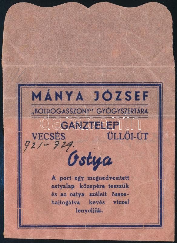 Mánya József "Boldogasszony" Gyógyszertára Ganztelep,Vecsés ... https://www.darabanth.com/hu/392-Gyorsarveres/392.0/Mutargy-papirregiseg-egyeb/Reklam~500022/Manya-Jozsef-Boldogasszony-Gyogyszertara-Ganztelep-Vecses-receptboritek~II2374033