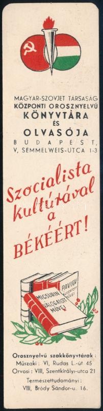 cca 1950-60 Könyvjelző "Szocialista kultúrával a békéért" pr... https://www.darabanth.com/hu/392-Gyorsarveres/392.0/Mutargy-papirregiseg-egyeb/Reklam~500022/cca-1950-60-Konyvjelzo-Szocialista-kulturaval-a-bekeert-propaganda-felirattal-es-illusztrC3~II2376494